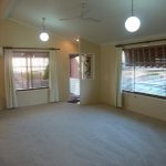 This home features a spacious open plan design, and carpeted living areas with cathedral ceilings. The spacious kitchen has plenty of cupboard space, electric free standing hotplate and oven combo and range hood, stainless steel sink, pantry with plenty of bench space. The spacious master bedroom has a built in robe with plenty of hanging space. The second bedroom can be utilised as a study or guest bedroom. It also has a separate bathroom and toilet.